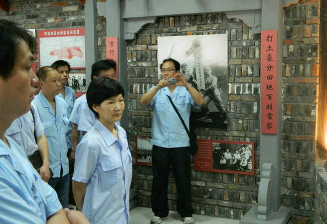 三、憶崢嶸歲月,緬懷革命先烈伴隨著淅瀝小雨,所有黨員在烈士紀(jì)念館前集合,在烈士紀(jì)念館工作人員的帶領(lǐng)下,隨即開始了正式參觀。烈士紀(jì)念館里,陳列著許多珍貴的歷史文物,有革命烈士使用過的步槍、手榴彈、刺刀等,仿真的場景和人物蠟像,生動地展示了當(dāng)時革命的艱苦歲月。一件件珍貴的遺物,一張張模糊的照片,一段段翔實的文字,讓我門腦海中那模糊的艱難歲月再一次清晰起來。