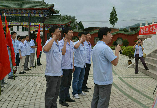 一、把最美的歌聲獻給黨7月1日清晨,空氣中彌漫著陣雨過后的清新和涼爽,鮮艷的黨旗在正奧公司的操場上迎風(fēng)飄揚,是那么的紅、那么的美!一百多名黨員在的操場上聚集,他們意氣風(fēng)發(fā),整裝待發(fā)。7點30分,大家依序登上了赴鄖西的大巴。一路上,黨員們歡歌笑語,百余名黨員用發(fā)自內(nèi)心的聲音,高唱《走在大路上》《打靶歸來》《十送紅軍》等歌曲,大家以飽滿的熱情、激昂的歌聲,唱出了對黨的無限熱愛、對祖國和人民的無比忠誠,唱出了祝福,唱出了喜悅,唱出了真情。車滾滾,歌聲嘹亮,天朗朗,豪情萬丈!洪亮的歌聲隨奔馳的客車飄向了遠方,在巍巍的大山中久久回蕩,不知不覺間,我們走到了上津古鎮(zhèn)。